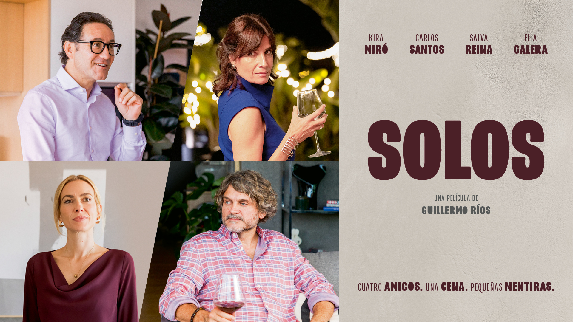 Tras su estreno mundial en la Sección Largometraje Oficial Fuera de Concurso del Festival de Málaga, donde los actores y parte del equipo pudieron disfrutar de la proyección de la película por primera vez con público, ‘Solos’ llega a los cines de todo el país para hacer reír, llorar y emocionarse a los espectadores con una historia que representa la realidad de toda una generación. Entre la juventud y la madurez, la película narra con tacto y humor un sinfín de emociones que trascurren durante una inocente cena de cuatro amigos.