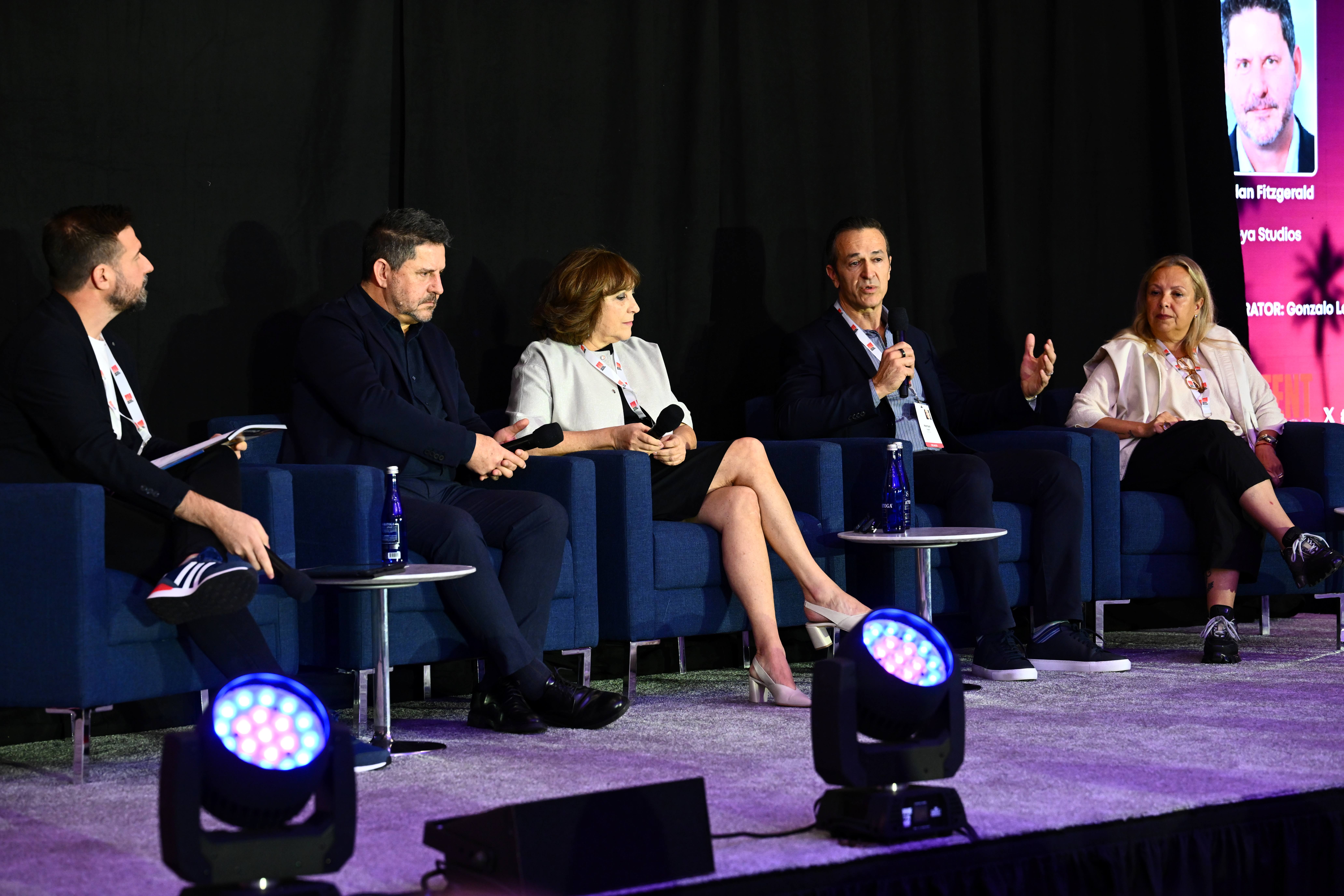 Fitzgerald compartió debate con Pilar Blasco (CEO, Banijay Iberia), Hernan López (Founder, Owl & Co) y Cecilia Mendonça (Senior entertainment executive), bajo la moderación de Gonzalo Larrea, editor de Cveintiuno (C21Media).